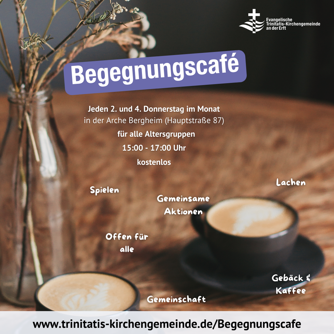 Das Begegnungscafé trifft sich jeden zweiten und vierten Donnerstag von 15:00-17:00 Uhr im Gemeindezentrum Arche Bergheim (Hauptstraße 87, 50126 Bergheim). Während des Begegnungscafés bieten …